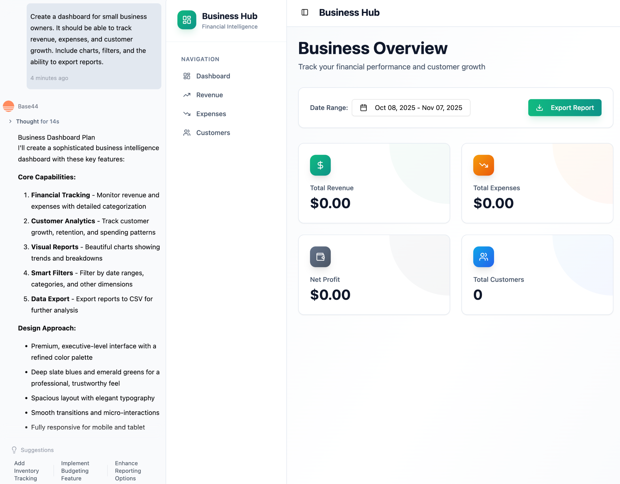 Here’s a <5 minute vibe-coded prototype for a SMB metrics dashboard. A nice touch is that they give you product suggestions at the end for adding new features:
