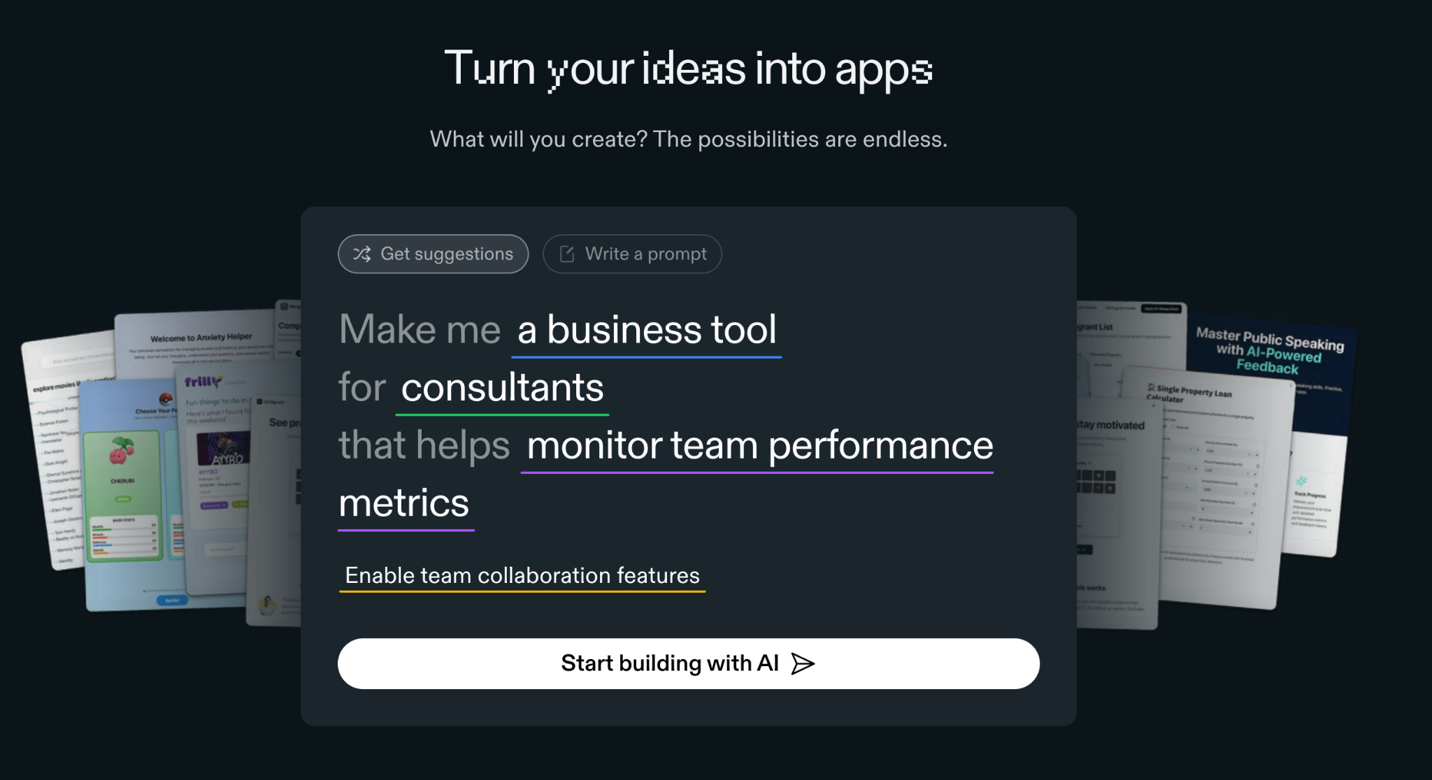 While you certainly can go from idea to workable version of that idea incredibly fast you’ll be missing one of the best benefits of these new tools: divergence and variety. You can use this to come up with multiple ideas and directions and then choose which one makes the most sense.