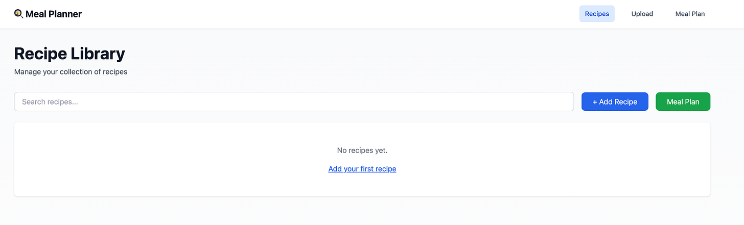 Here’s the shell of a meal planning application that I built with Cursor - it took longer and I needed to install some files locally on my machine - but this is a fully functional prototype: