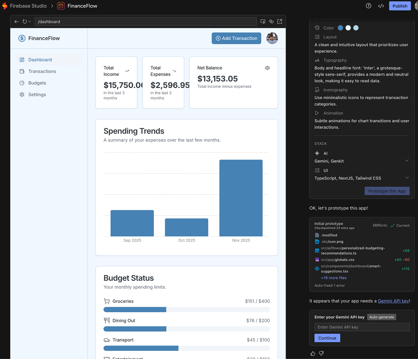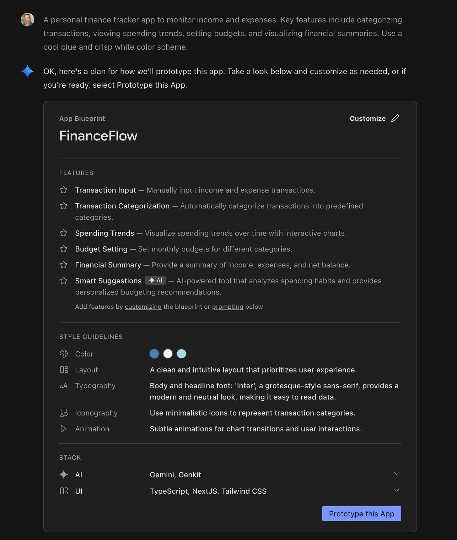 Here’s a personal finance tracker - notice how it gives you the components so you can edit them prior to developing the prototype: