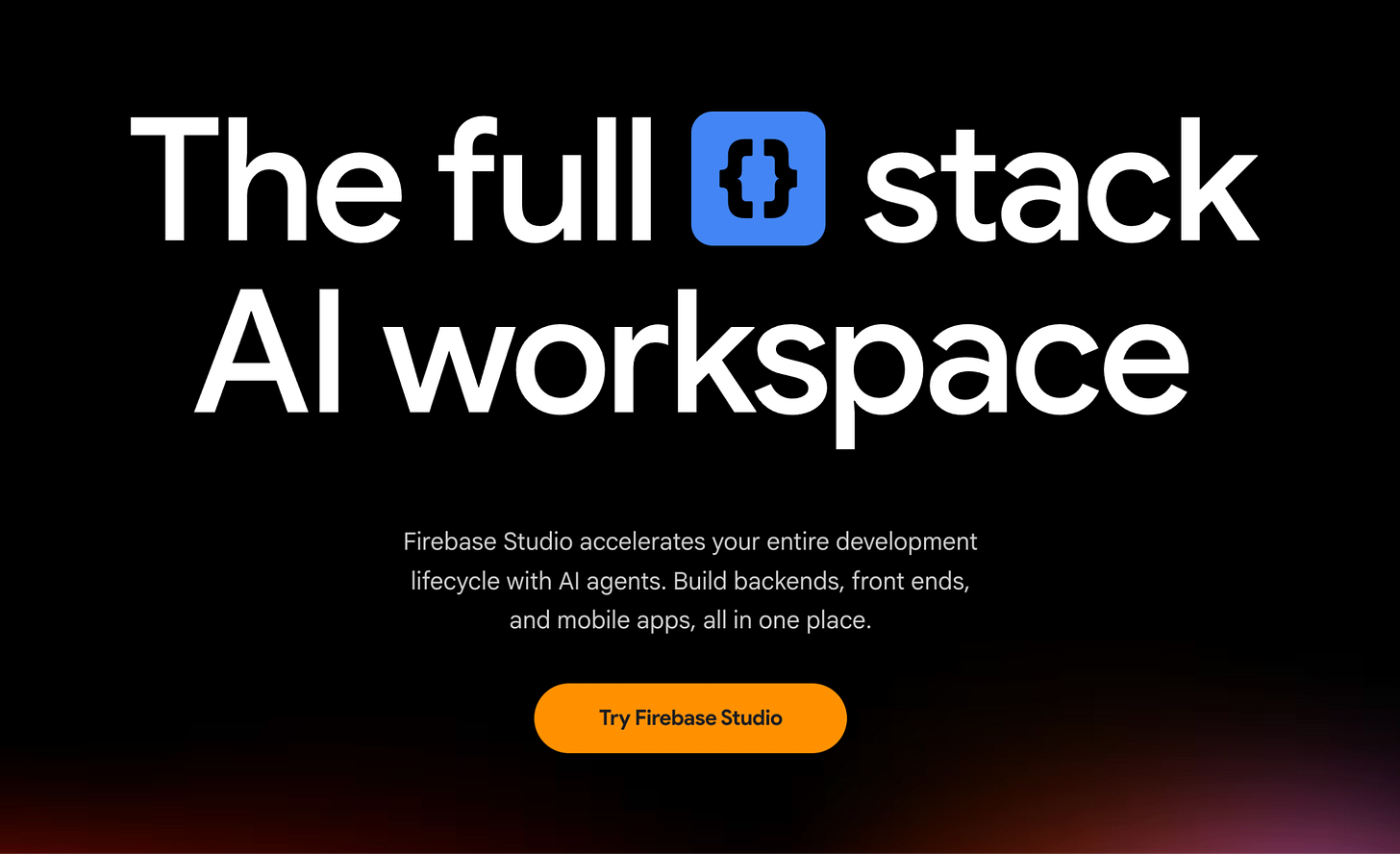 Google Firebase Studio is one of Google’s app builders. It’s similar in scope to Replit in that it enables you to build robust full-stack front-end and back-end applications, relying on Firebase for backend support. It also has the same trade-offs previously mentioned with Replit.