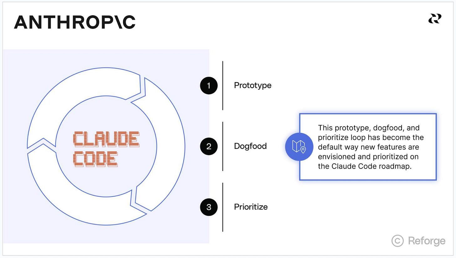 This prototype-driven prioritization approach is already taking hold at companies like Anthropic, where they use a prototype -> dogfood -> prioritize -> launch loop for deciding what to build next for Claude Code.