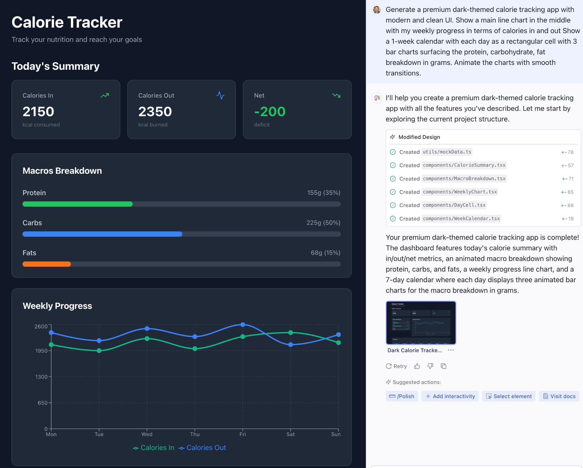 Here’s a calorie tracker prototype it built in <1 minute: