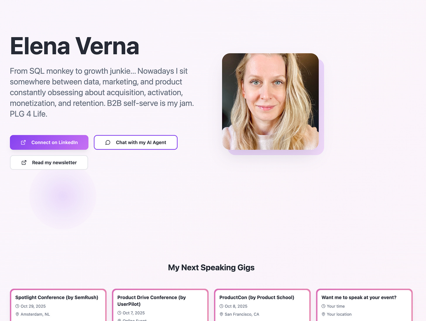 Our pal Elena Verna built her personal website with Lovable: